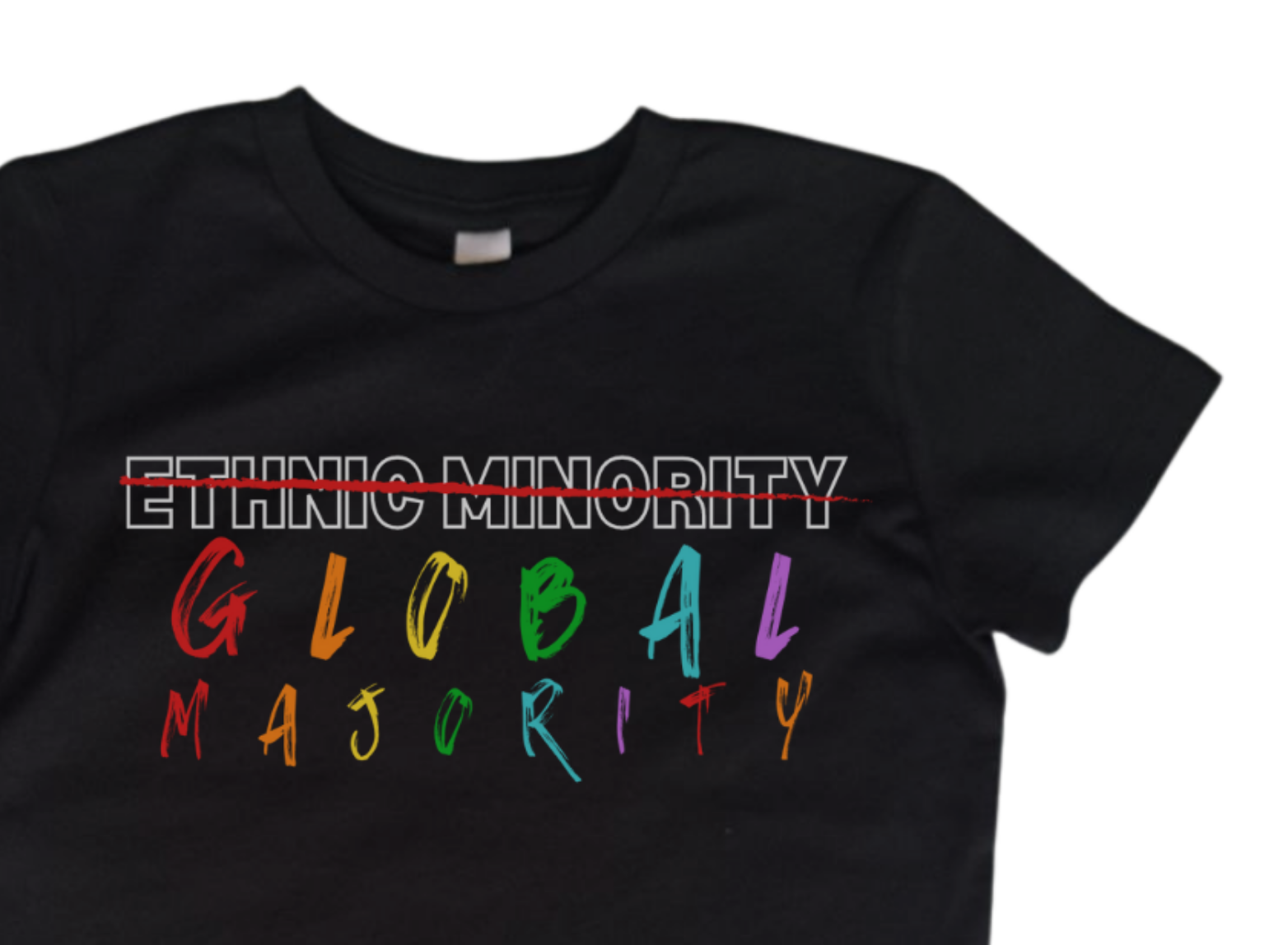 An emboldened statement, challenging old narratives because we understand the implications of disempowering language. A statement piece speaking FACTS. Premium quality in beautiful black with a bright, colourful and powerful design.